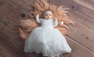 The Julia Dress is a beautiful white lace christening gown designed for your baby’s special day. Made with soft, breathable fabric and delicate floral lace, it offers timeless elegance and comfort. Featuring lace sleeves, a flowing skirt, a sweet back bow, and a matching bonnet, it’s perfect for baptisms, photos, and cherished memories.