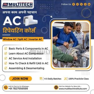 Join the AC Repairing Course at Multitech Institute in Delhi, where we provide hands-on training and expert guidance. With experienced trainers, state-of-the-art equipment, and real-world practice, Multitech Institute is your go-to destination for AC Repairing Course In Delhi