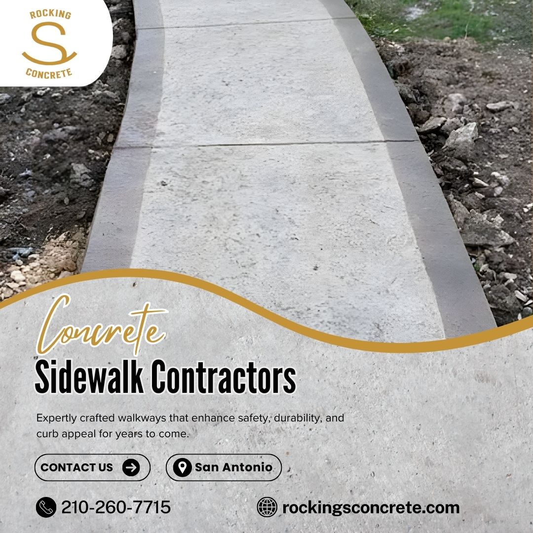 Damaged or uneven sidewalks can limit safe access for visitors and pedestrians while creating liability concerns. Properties need walkways built for constant foot traffic and long-term performance. Rocking s concrete is a trusted concrete sidewalk contractor in San Antonio delivering smooth, durable installations and reliable repairs that improve safety, accessibility, and property value. Build with confidence. Contact our team today.