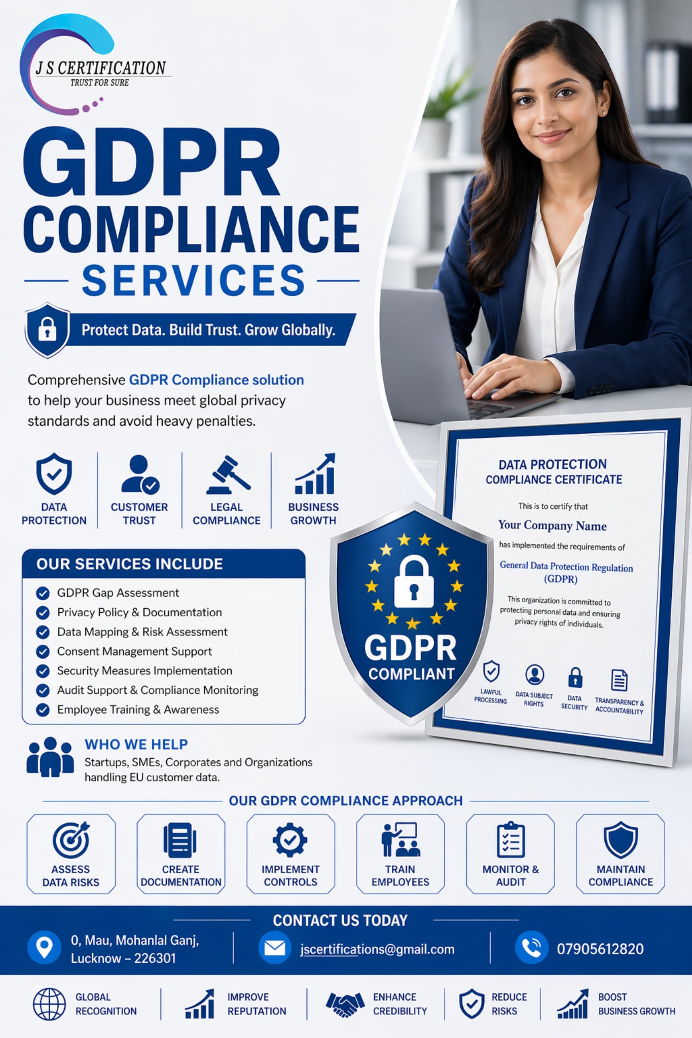GDPR Compliance Services help businesses protect personal data and comply with global privacy regulations. These services include data assessment, policy creation, risk management, and security implementation to ensure safe handling of customer information. A proper GDPR Compliance Solution not only reduces legal risks but also builds customer trust and improves business credibility. It is essential for startups, MSMEs, and companies dealing with international clients, especially in the European market.