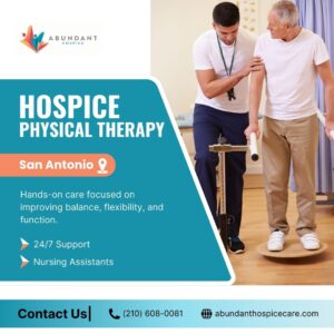 As physical strength changes, even simple movements can feel challenging. Abundant Hospice provides supportive hospice physical therapy in San Antonio, focusing on comfort, flexibility, and safe mobility to help patients move with less pain and greater ease throughout hospice care. Contact us today!