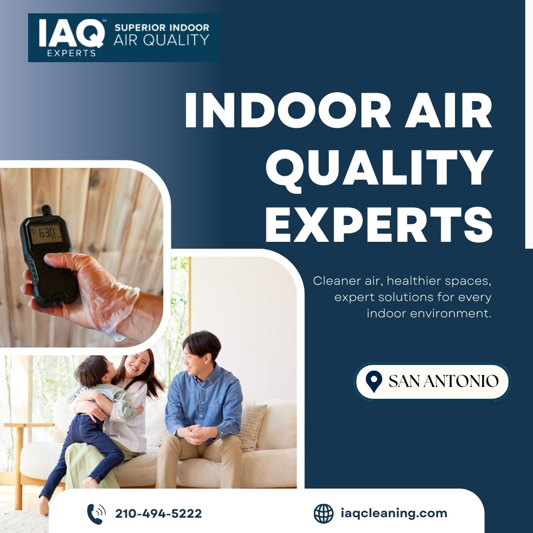 Indoor air quality issues often arise from dust, mold, humidity, and inadequate ventilation. IAQ Experts enhances indoor air quality in San Antonio through air testing, filtration upgrades, and targeted cleaning solutions. Create a healthier environment for your home or business. Get started today. Contact IAQ Experts now! Visit here: https://iaqcleaning.com/