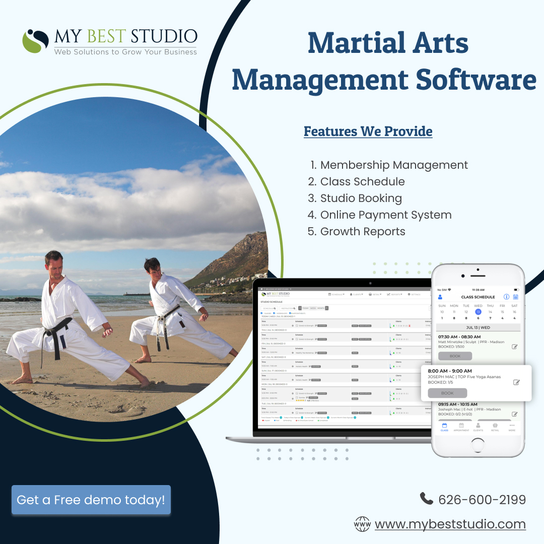 Looking for martial arts studio management software? My Best Studio’s martial arts software designed to manage scheduling, billing, marketing, and attendance tracking to help grow your revenue. Book a free demo.