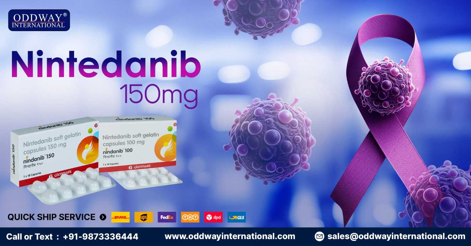 Nintedanib 150 mg serves as an authorized treatment option for patients suffering from severe progressive lung diseases which include idiopathic pulmonary fibrosis and systemic sclerosis-associated interstitial lung disease and other fibrosing interstitial lung disorders. The diseases produce lung tissue scarring which results in diminished oxygen exchange and breathing difficulties. The active ingredient Nintedanib 150 mg helps to reduce the scarring process while maintaining lung capacity throughout the duration of treatment.