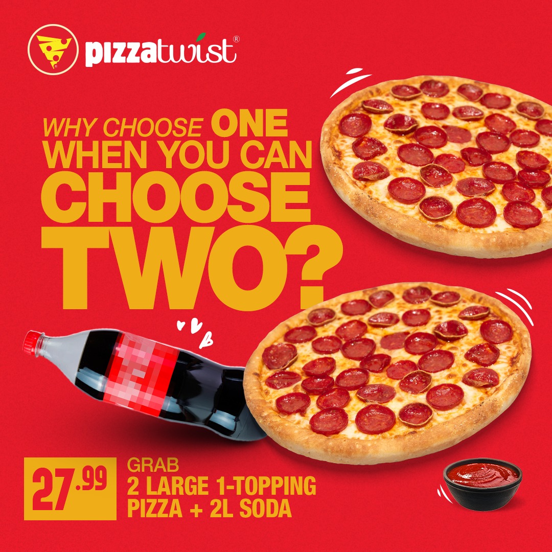 Looking for the best pizza in North California Stockton? Welcome to Pizza Twist, where bold flavors, fresh ingredients, and unbeatable value come together. As a trusted Pizza restaurant in Stockton, CA, we serve pizzas crafted to satisfy every craving—from classic favorites to signature fusion creations that keep locals coming back for more. Why settle for just one when you can have the perfect pair? At Pizza Twist, we believe more is always better. Whether you’re hosting a movie marathon, cheering on your favorite team, or feeding a hungry household, our latest value deal is made for sharing and saving. The Deal: Grab 2 Large 1-Topping Pizzas plus a refreshing 2L Soda for only $PRICE!Choose your favorite fresh toppings, from classic pepperoni to savory veggie options, all layered on our signature crust and baked to perfection. It’s the ultimate combination of flavor, value, and convenience. Enjoy your meal dine-in, takeout, or from the comfort of home with easy online ordering. Don’t wait for the weekend to treat yourself—this deal is perfect for any day you’re craving great food at a great price. Visit your local Pizza Twist or order online now and discover why we’re known for the best pizza in North California Stockton.