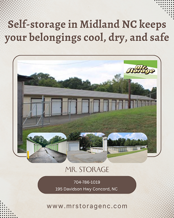 Self-storage in Midland NC offers clean, climate-controlled units that protect your belongings from moisture, odors, and humidity. Mr. Storage is locally owned and managed with affordable pricing. We have storage facilities in Concord, Salisbury, Harrisburg, Midland, and Kannapolis NC. Contact us today to reserve your unit.