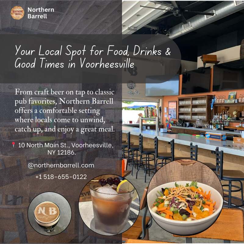 Looking for a relaxed place to grab food and drinks in Voorheesville, NY? Make Northern Barrell your go-to neighborhood bar and restaurant. From craft beer on tap to classic pub favorites, Northern Barrell offers a comfortable setting where locals come to unwind, catch up, and enjoy a great meal. What you’ll find at Northern Barrell: Rotating craft beer & cider taps Pub-style food made to order Friendly, hometown atmosphere Easy stop for weeknights or weekends 10 North Main St., Voorheesville, NY 12186 Dine-in available Stop by and see why Northern Barrell is a favorite spot for food and drinks in Voorheesville. https://northernbarrell.com/